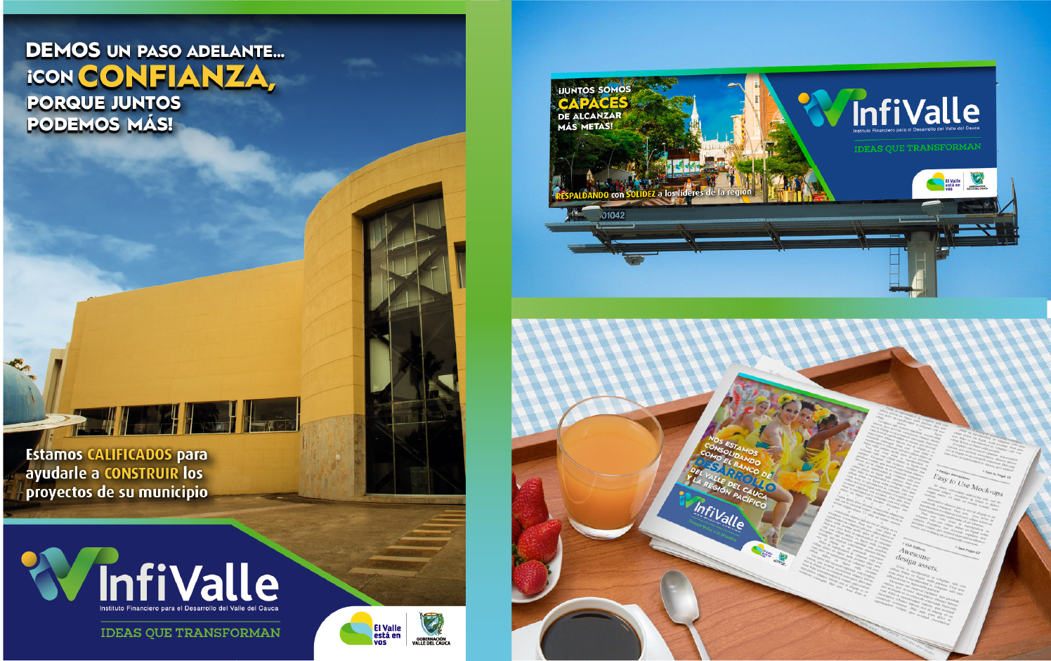 From 2015 to 2020, EA Creativo served as the creative partner of Infivalle, the Instituto Financiero para el Desarrollo del Valle del Cauca, a AAA-rated public financial institution serving municipalities, businesses, and citizens across the entire Valle del Cauca department in Colombia.