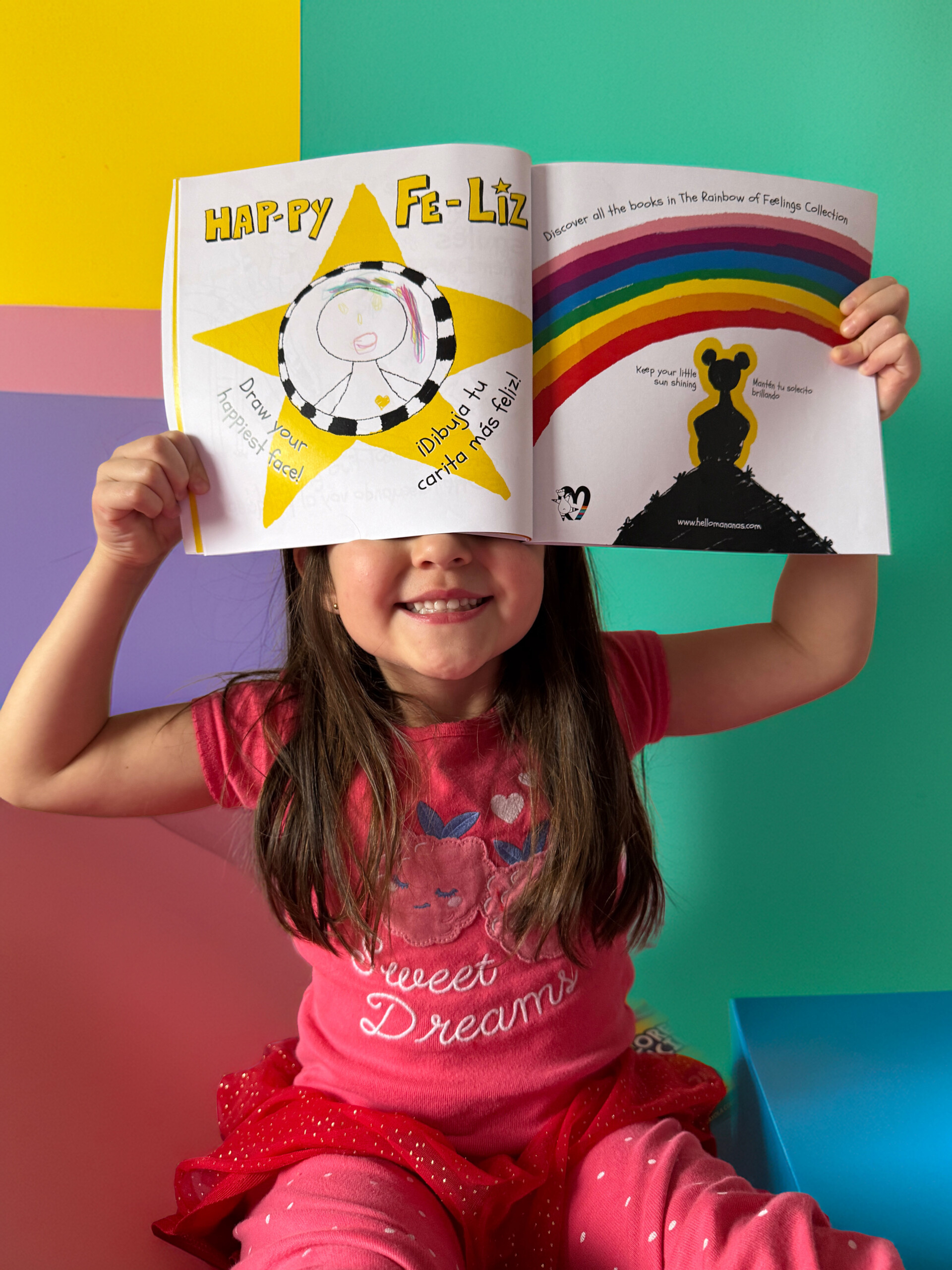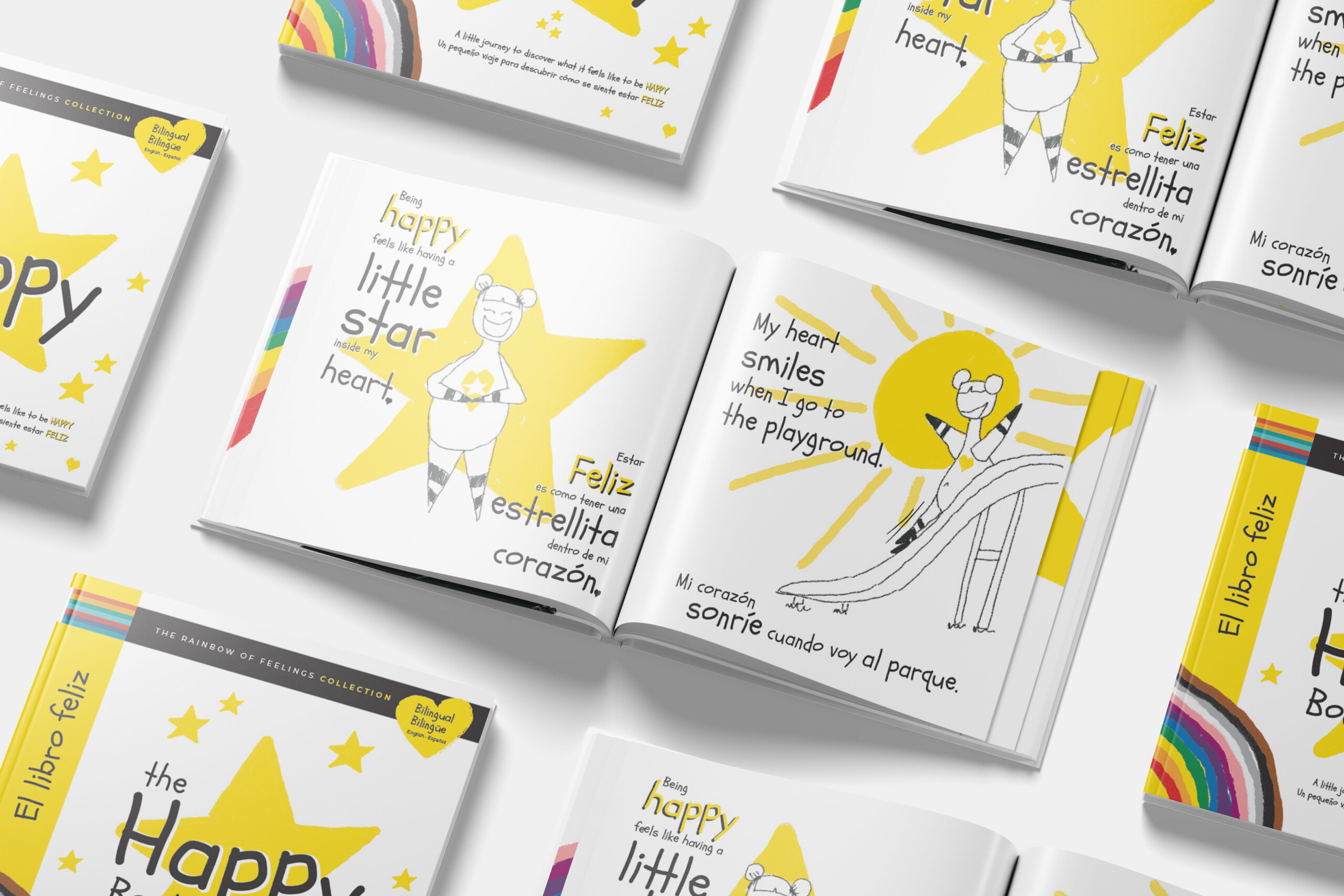 Every book follows the same architecture — color-coded cover, character in that emotion’s palette, interactive closing page — making the system immediately recognizable as a collection.