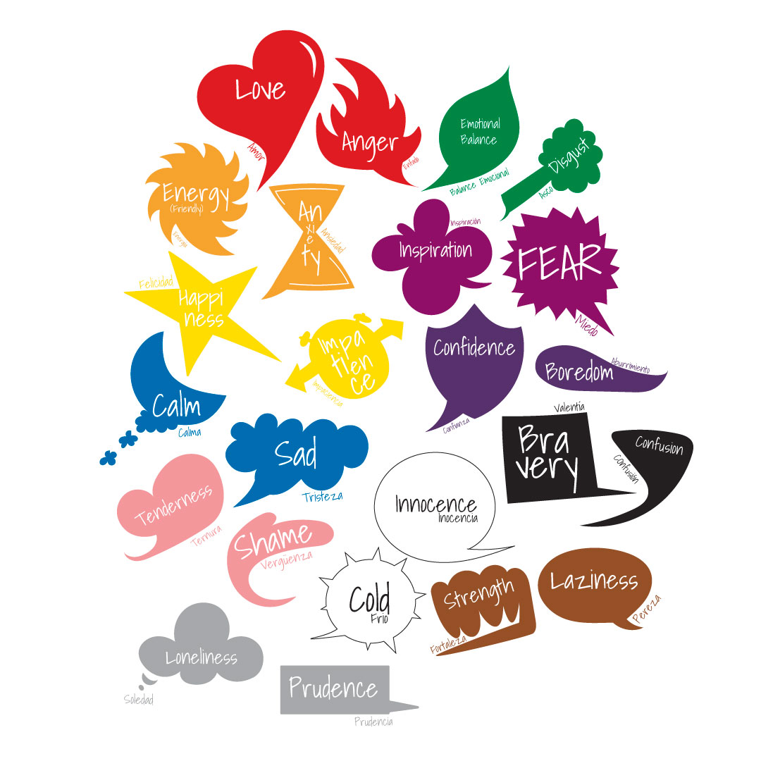 Happy, Sad, and Calm are the first three colors of the rainbow. The remaining emotions and their colors are already mapped and ready.