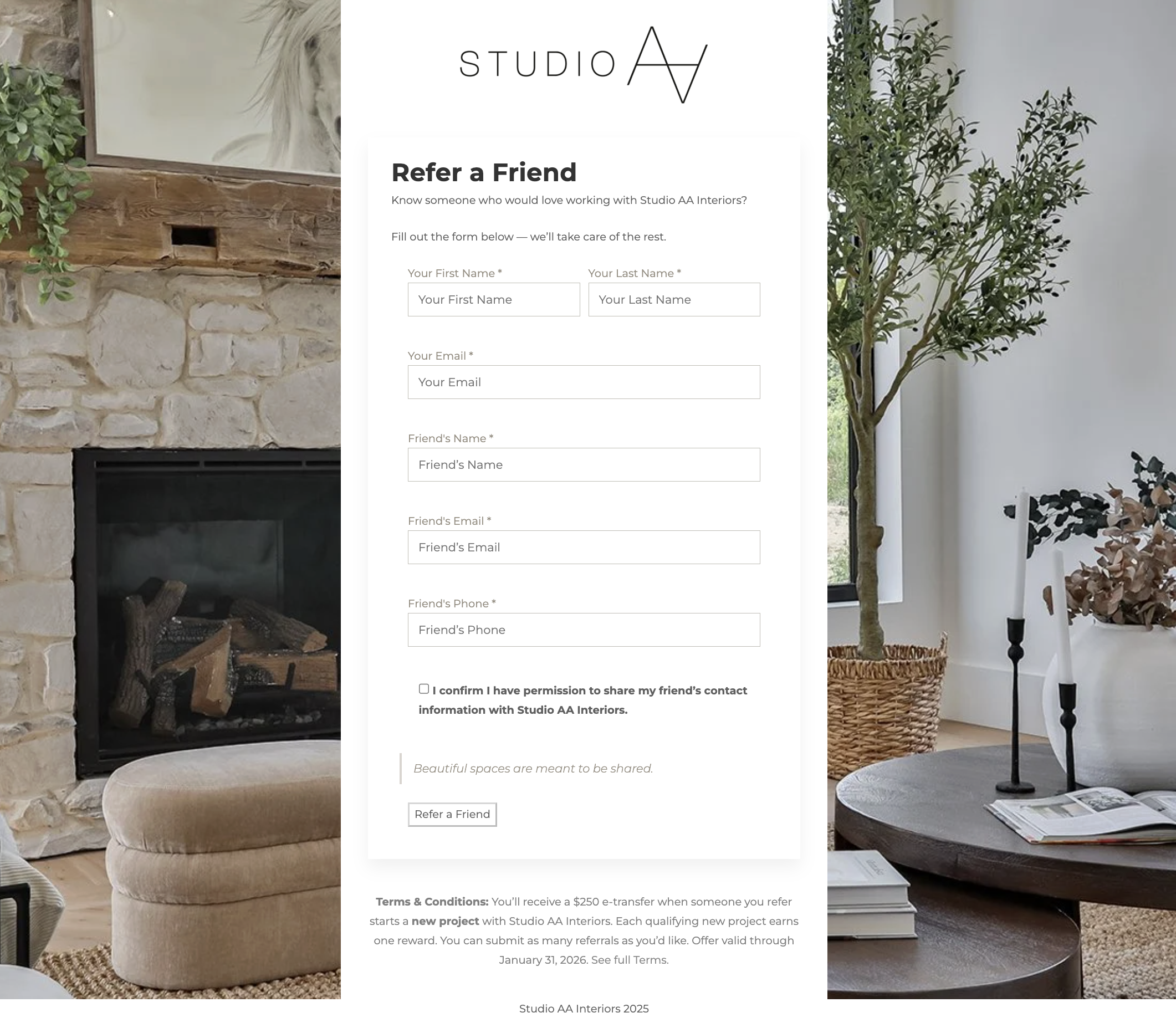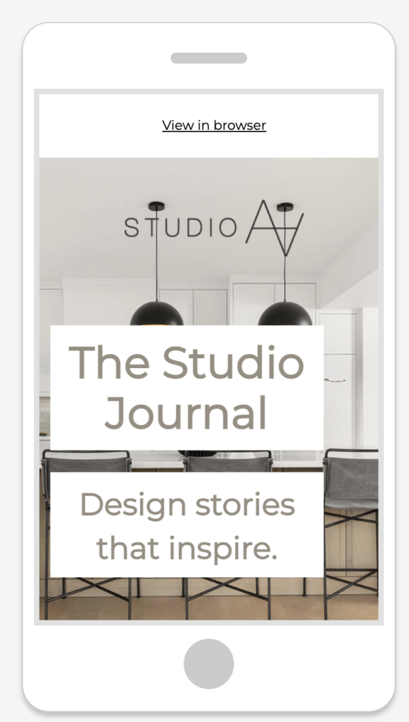 - Value-driven newsletter content — recurring sends with interior design tips, trend insights, and topics of genuine interest to the studio’s audience, positioning Studio AA as a trusted voice in the space